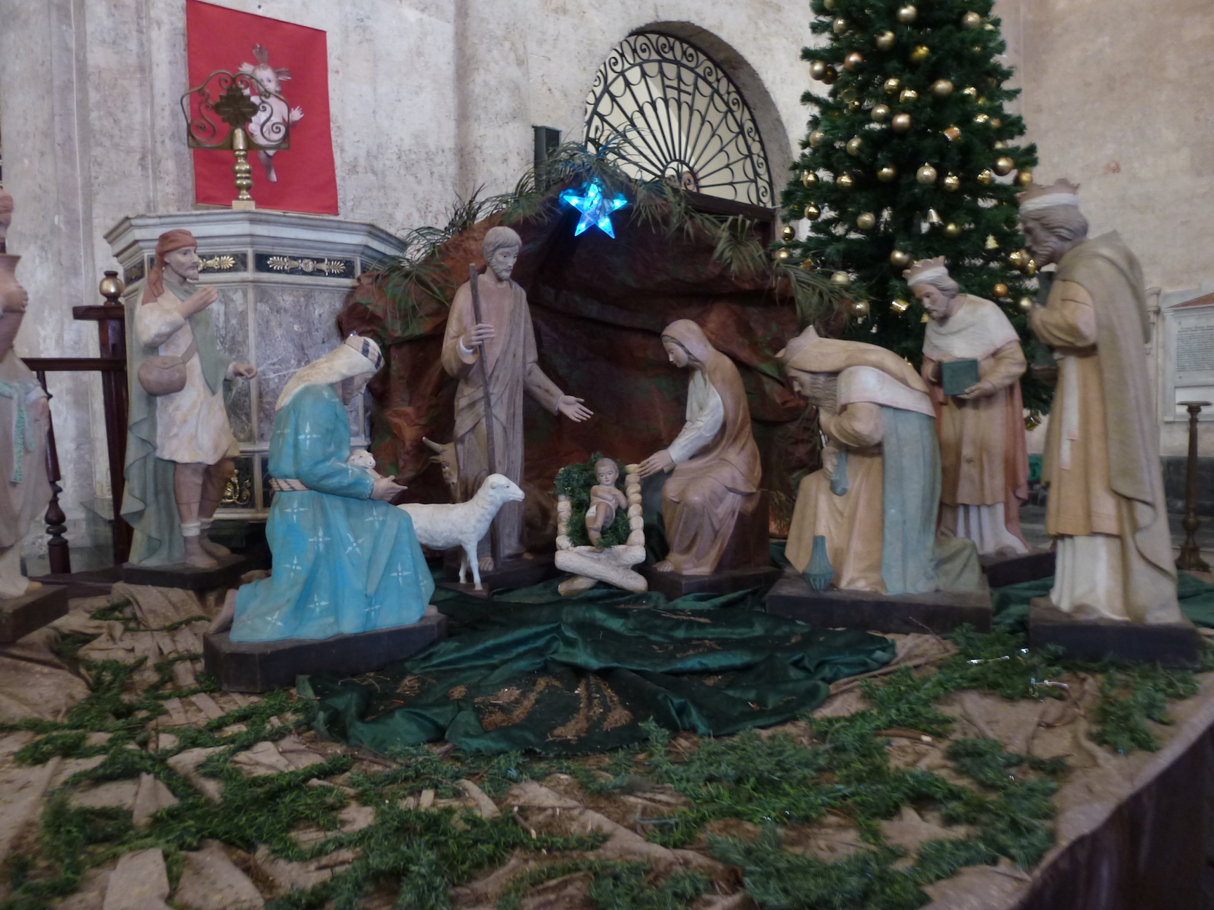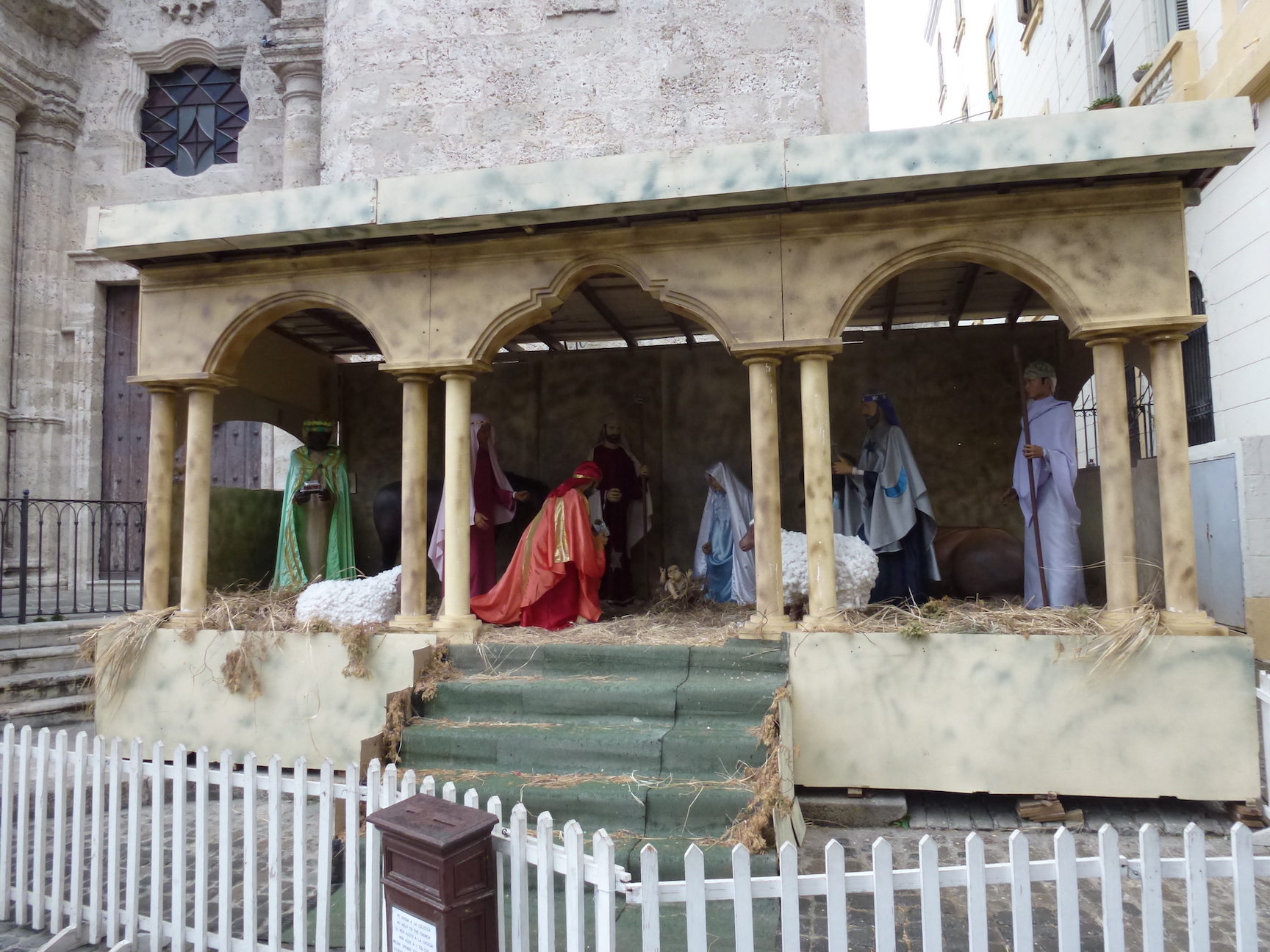 Die große Steintempel-Krippe haben wir in Havanna auf Kuba entdeckt. Sie stand direkt vor der barocken Kathedrale mit Muschelkalkfassade auf der historischen Plaza de la Catedral. In der Kathedrale selbst gab es dann noch eine weitere große Krippe.