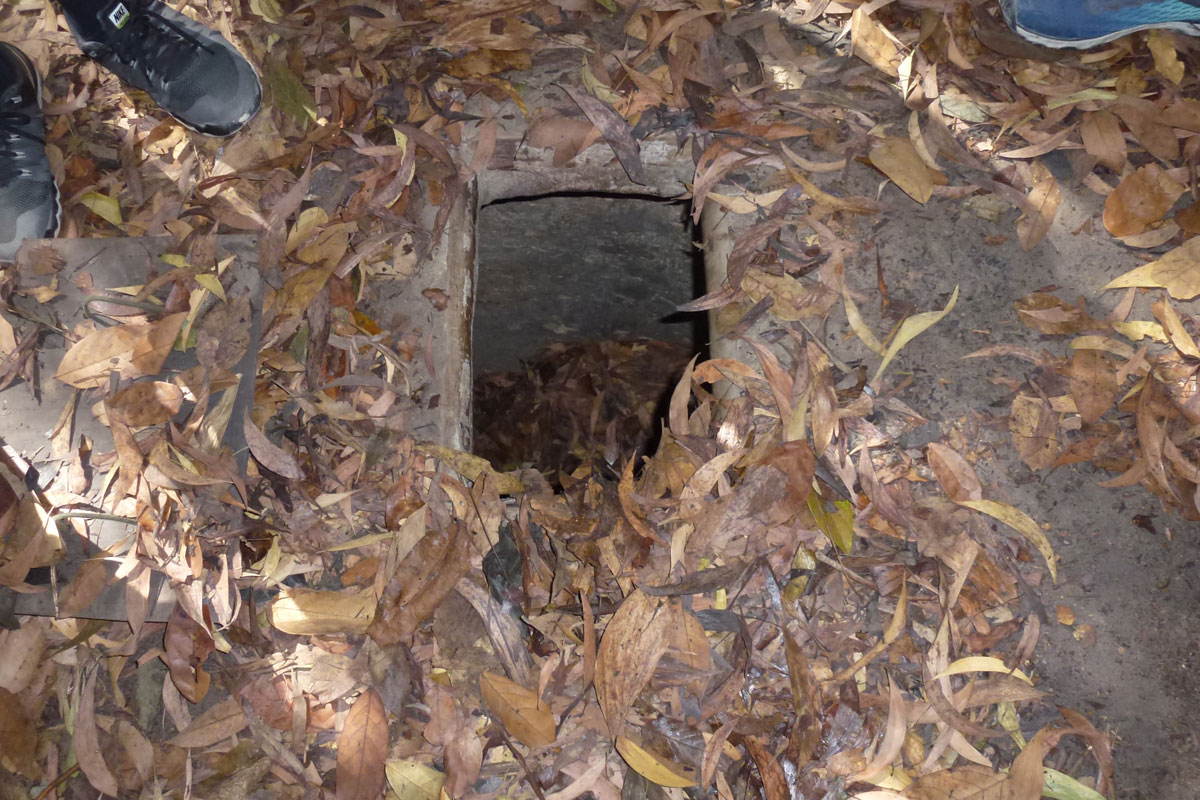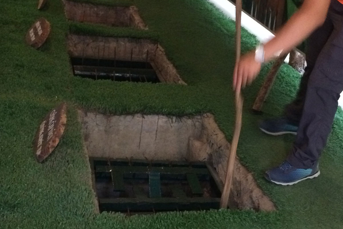 Ein bedeutender Stützpunkt des Vietcong waren die Tunnel von Cu Chi. Dieses ausgeklügelte Tunnelsystem liegt ca. 70 km von Ho-Chi-Minh-Stadt entfernt. Auf einer Gesamtänge von ca. 200 Kilometern gab es dort unter der Erde auf drei Ebenen ganze Städte mit Schulen, Krankenhäusern, Büros, Küchen und Schlafgelegenheiten. Als die Amerikaner an nahezu der gleichen Stelle eines ihrer Hauptquartiere errichteten, wussten Sie nicht, dass der Feind quasi direkt unter ihren Füßen lag. Heute kann man sich das ganze System bei einem Besuch dort genau erklären lassen. Absolut spannend und empfehlenswert – auch wenn es etwas befremdlich ist, dass man dort gegen eine Extragebühr auch die Möglichkeit hat, mit einem echten Maschinengewehr zu schießen (was wir nicht gemacht haben). Mehr zu den Tunneln auf Wikipedia