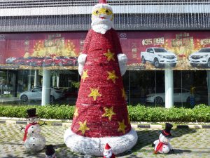 Bunte Weihnachtsdeko bei 30 Grad und mehr hat für uns auch nach so vielen Jahren des Reisens in ferne Länder noch immer etwas äußerst Skuriles. Als Westeuropäer verbinden wir die Weihnachtszeit einfach mit Kälte und Schnee. Gleichzeitig fällt uns immer wieder auf, wie unterschiedlich die Ausgestaltungen und Geschmäcker weltweit in Bezug auf Weihnachtsdeko sind. Vor allem in tropischen Regionen stehen Plastik und andere Kunststoffe hoch im Kurs. Aufgrund der Tatsache, dass es dort keine echten Tannen gibt, durchaus nachvollziehbar. Aber in unseren Augen wirkt das meiste doch ziemlich gewöhnungsbedürftig …